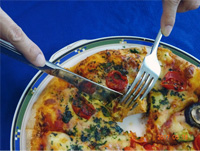 ナイフとフォークで食べる場合の場合の食べ方は? |